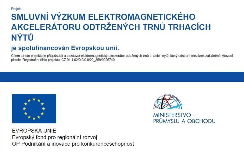 V rámci projektu Smluvní výzkum elektromagnetického akcelerátoru odtržených trnů trhacích nýtů je ověřena varianta automatického přesunutí odtržených trnů trhacích nýtů do zásobníku nýtovací akumulátorové pistole.
